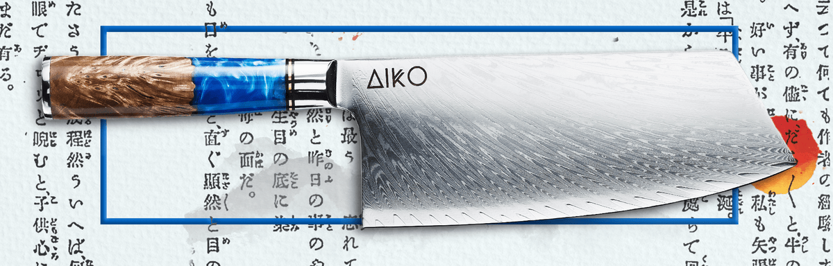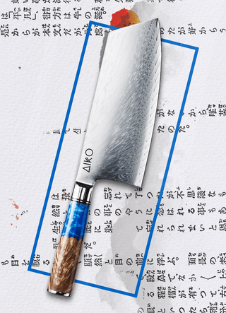 Aiko Blue (あいこ, アイコ) Damaskus stålkniv med farget blå harpikshåndtak