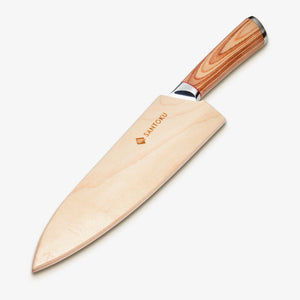 • Hver kniv er ledsaget av en massivtre skabb/skjede for sikker lagring.